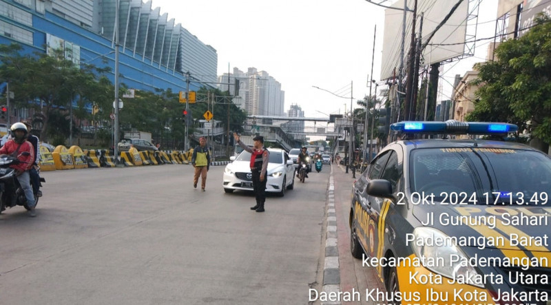 Jakarta,Media Budaya Indonesia Com - Pengaturan lalu lintas adalah merupakan salah satu bentuk pelayanan anggota Samapta Polsek Pademangan Polres Metro Jakarta Utara kepada masyarakat di Jalan Raya Gunung Sahari, Jakarta Utara, Rabu Sore (02/10/24).