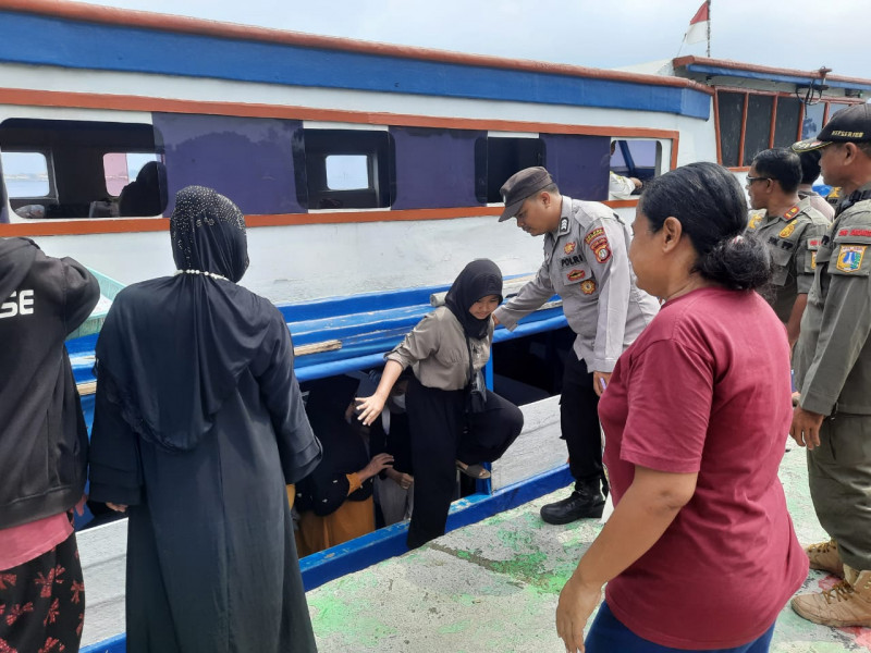 Selain itu anggota pengamanan juga memberikan pelayanan humanis dengan membantu penumpang yang turun dari kapal. (NK)