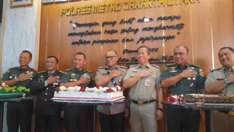 Untuk lebih mempererat tali silaturahmi dan sinergisitas TNI dan Polri, selanjutnya dilaksanakan pemotongan kue ulang tahun oleh Asrena dan di berikan kepada Kapolres Jakarta Utara, dilanjutkan pemotongan tumpeng oleh Asintel Kasad dan diberikan kepada Kapolres Jakarta Utara.