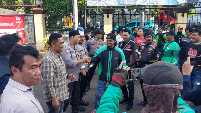 Komunitas Ojol KBP Gelar Aksi Damai, Serahkan Bunga Mawar ke Polsek Metro Penjaringan