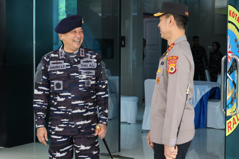 Ambon, Media Budaya Indonesia. Com - Komandan Kodaeral IX Ambon Laksda TNI Hanarko Djodi Pamungkas S.H., terima Courtesy Call (CC) Kapolda Maluku Irjen Pol Prof. Dr. Dadang Hartanto, S.I.K., S.H., M.Si., bertempat di Lobby Mako Kodaeral IX, Rabu (03/09/2025).