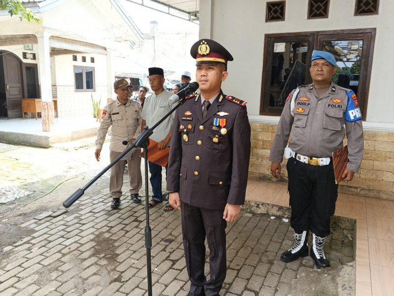 Barisan anggota kepolisian tampak memberikan penghormatan terakhir, mengiringi kepergian almarhum ke tempat peristirahatan terakhir.