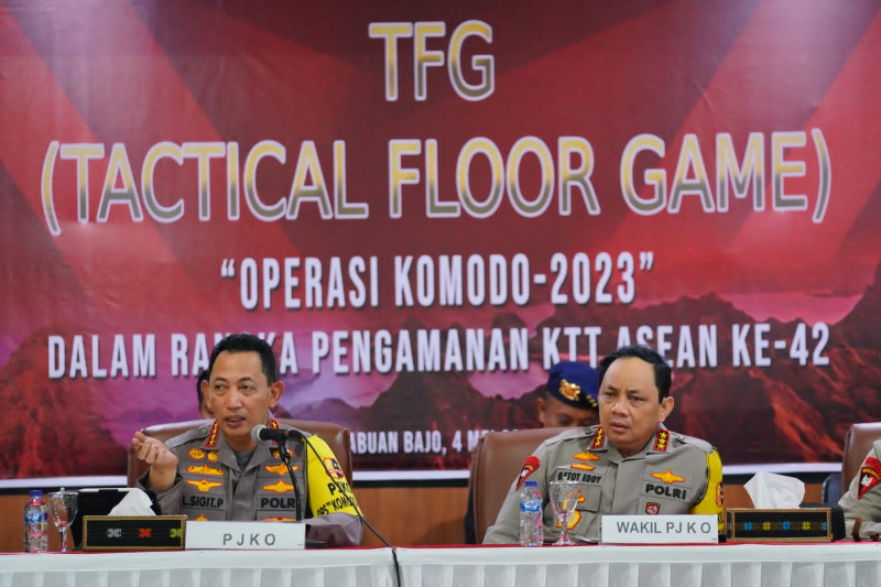 "Jadi latihan yang kita laksanakan pagi ini, tentunya merupakan bagian dari upaya untuk mempersiapkan rencana yang akan kita laksanakan untuk menggelar rangkaian pengamanan. Yang tentunya, nanti akan dilaksanakan bersama dengan rekan-rekan dari TNI," kata Sigit usai meninjau Tactical Floor Game di Labuan Bajo, Kamis, 4 Mei 2023.