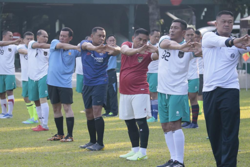 Olahraga bersama kali ini Kodam Jaya menggelar pertandingan sepakbola. Dalam satu tim terdiri dari gabungan TNI dan Polri.