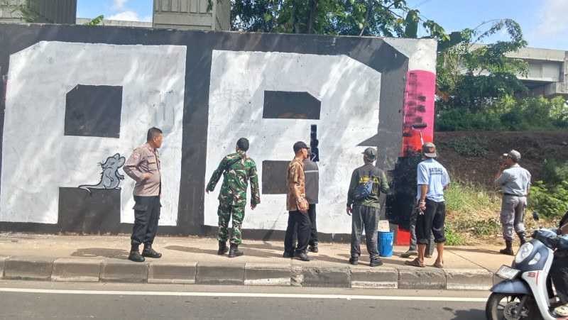 Sinergi Tiga Pilar, TNI-Polri dan Warga Bekasi Barat Bersihkan Coretan di Jakasampurna