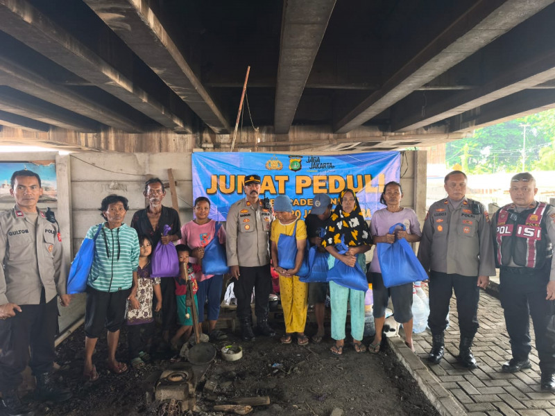 Jumat Peduli, Polsek Pademangan Salurkan Sembako kepada Warga Penghuni Kolong Tol Lodan Raya