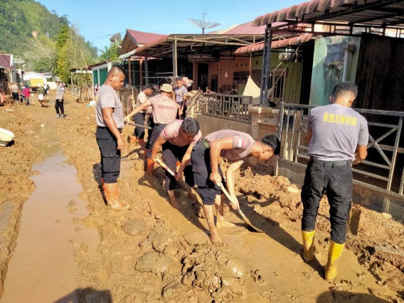 Kabagpenum Ropenmas Divhumas Polri Kombes Pol Erdi A. Chaniago menegaskan bahwa kehadiran personel Brimob di lokasi terdampak bencana merupakan bentuk tanggung jawab kemanusiaan Polri kepada masyarakat.