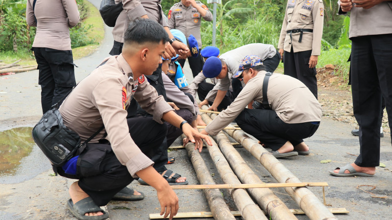 Ditpolairud polda Jabar dan Satpolairud Polres Sukabumi bangun jembatan darurat untuk Warga