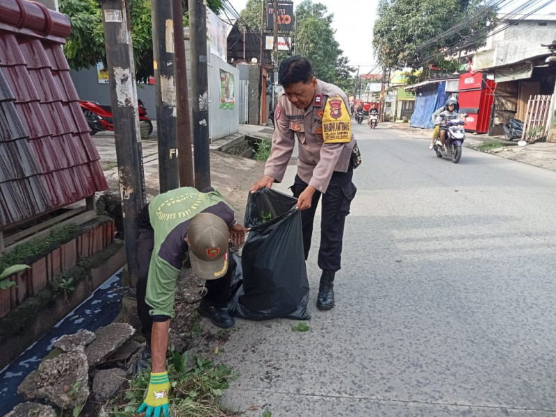 Cegah Banjir Bhabinkamtibmas Jakasampurna Giatkan Bersih-bersih Lingkungan