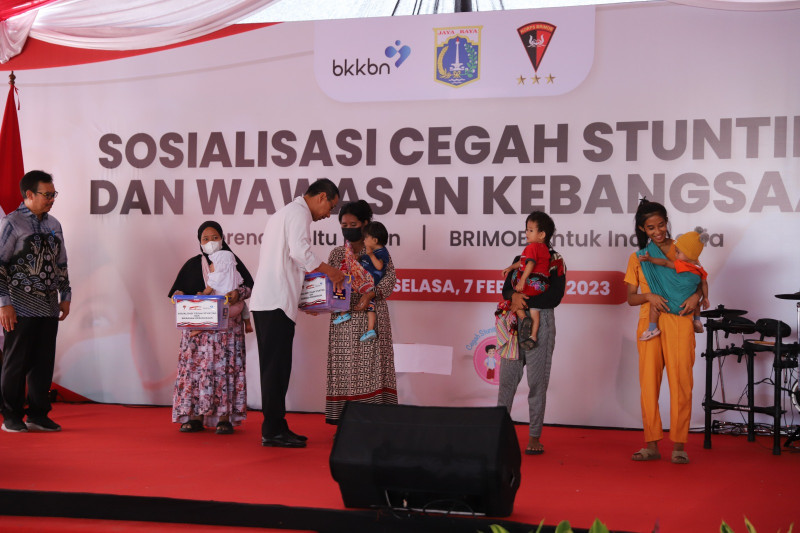 Jakarta Utara I Media Budaya Indonesia.Com - Sebagai rangkaian percepatan program nasional penanganan stunting, Korps Brimob bersinergi dengan Badan Kependudukan dan Keluarga Berencana Nasional (BKKBN) dan Pemerintah Provinsi DKI Jakarta menyelenggarakan kegiatan Bakti Sosial Penanganan Stunting dengan tema Sosialisasi Cegah Stunting dan Wawasan Kebangsaan di Kalibaru, Cilincing, Jakarta Utara, Selasa (7/2).