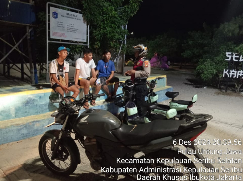 Dipimpin langsung oleh Kapolsek Kepulauan Seribu Selatan, AKP Sanyata Harsono, patroli menyasar beberapa lokasi rawan gangguan kamtibmas di wilayah hukum Polsek Kepulauan Seribu Selatan. Dalam kesempatan tersebut, AKP Sanyata memberikan imbauan kepada para remaja agar tidak keluar rumah di malam hari tanpa alasan penting serta menghindari aktivitas yang dapat melanggar hukum, termasuk tawuran. "Tawuran bukan hanya melanggar hukum, tetapi juga merugikan diri sendiri dan masyarakat. Kami mengajak para remaja untuk menghindarinya demi masa depan yang lebih baik," tegasnya.
