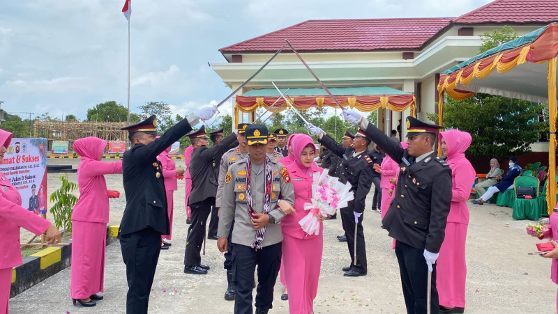 Pejabat Kapolres Kayong Utara Lama AKBP Arief Hidayat, S.H,S.I.K Berserta Ny. Dhyana Arif Hidayat Dilepas Dengan Tradisi Pedang Pora