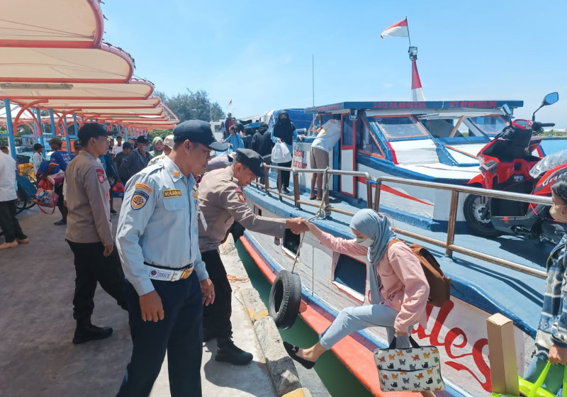 Memberikan bantuan kepada penumpang yang hendak turun dari kapal ojek merupakan bagian dari pelayanan kepolisian dalam pelaksanaan giat rutin Pam Dermaga.