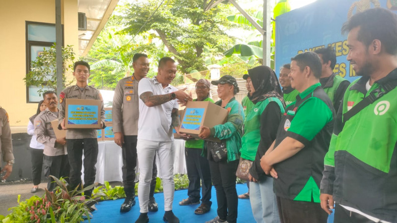 Polres Metro Jakarta Utara Gelar Silahturahmi dengan Driver Ojol, Bagikan 200 Paket Sembako dan Pengobatan Gratis di Kelapa Gading