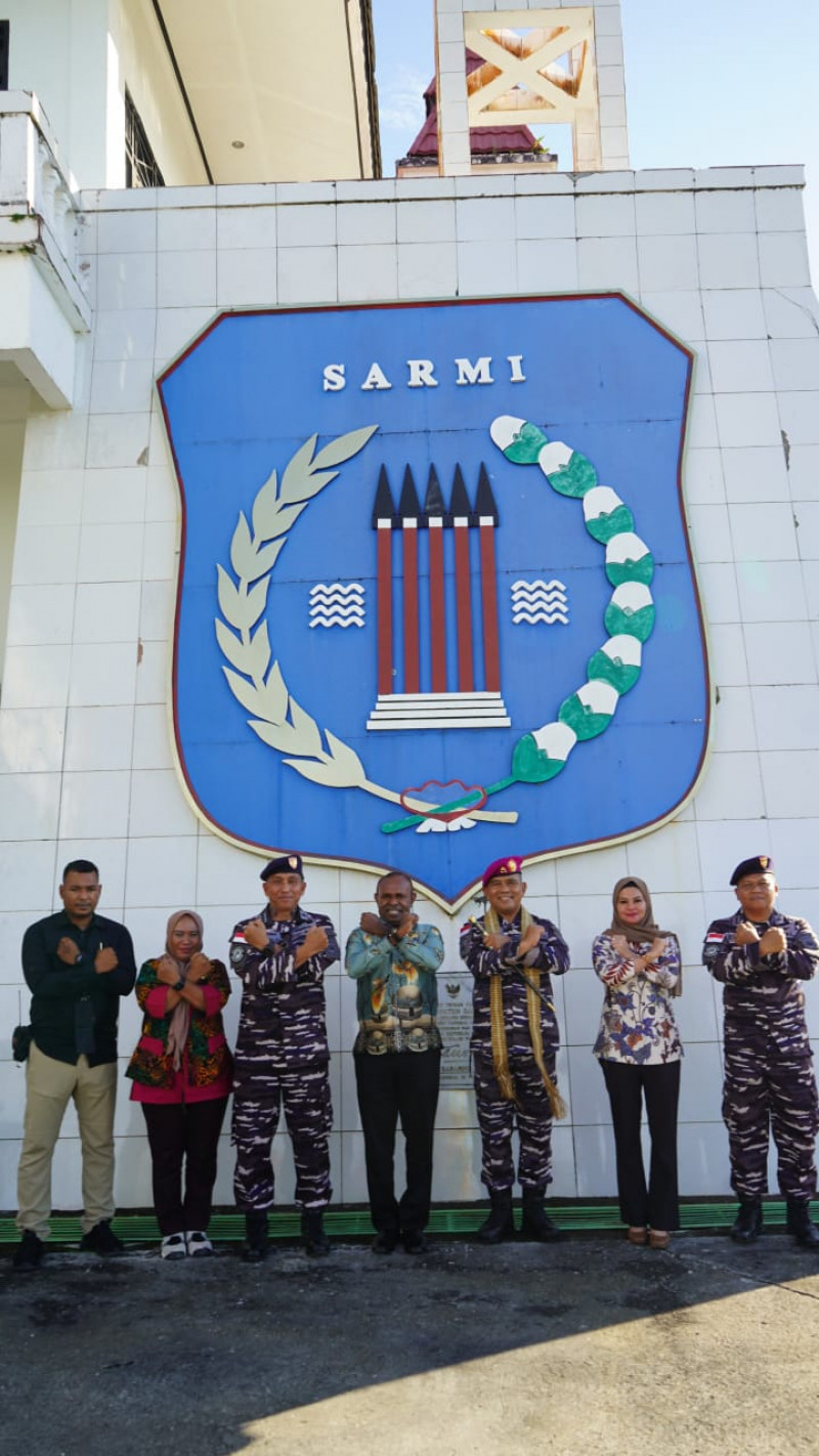 Usai meninjau fasilitas di Lanal Sarmi, Dankodaeral X beserta rombongan melanjutkan kunjungan ke Kantor Bupati Kabupaten Sarmi, dimana mereka disambut hangat oleh Bupati Dominggus Catue, SKM., M.Kes., bersama Wakil Bupati Hj. Jumriati, S.H. Pertemuan berlangsung dalam suasana penuh keakraban dan saling menghormati, menggambarkan sinergi antara unsur TNI AL dan pemerintah daerah dalam membangun wilayah pesisir dan menjaga kedaulatan laut.