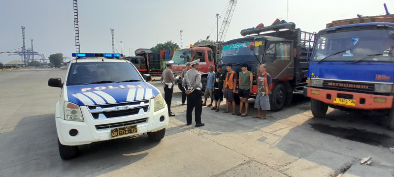 Kali ini, Kanit Gakkum Satlantas Iptu Asep, S.H., Aiptu Tarmuji, Bripka Taufik Personel Satlantas Polres Pelabuhan Tanjung Priok memberikan imbauan keselamatan berlalu lintas, keselamatan kerja dan Cooling System Pilkada damai kepada pengemudi Truk di Dermaga 002 Pelabuhan Tanjung Priok, Minggu (08/12/2024)