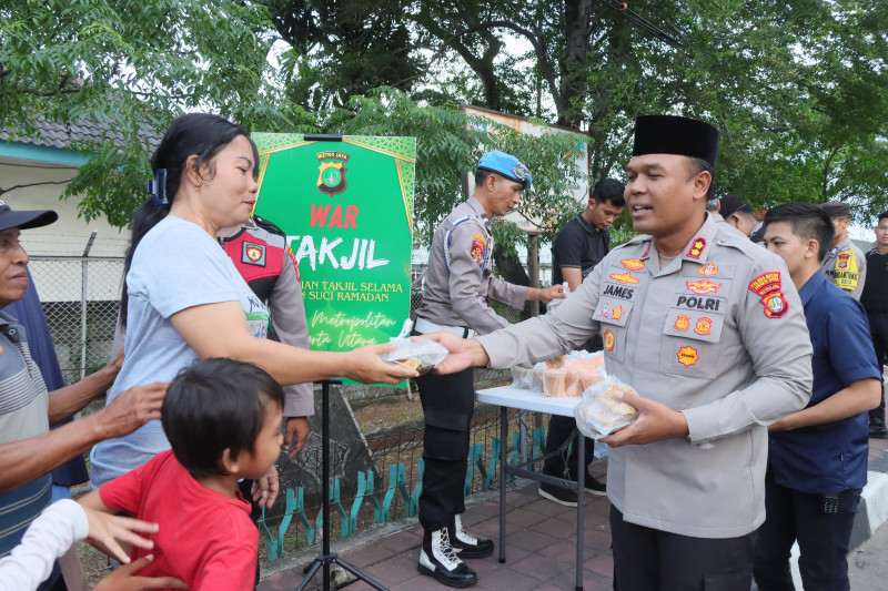 POLRES METRO JAKARTA UTARA GELAR WAR TAKJIL, BAGIKAN 150 PAKET TAKJIL UNTUK WARGA KOJA