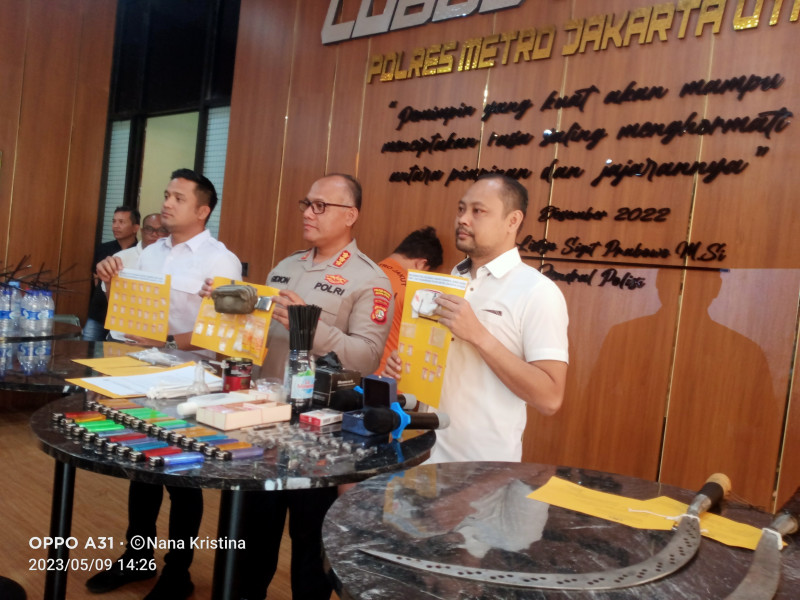 Konferensi pers dihadiri Kapolres Metro Jakarta Utara Kombes Pol Gidion Arif Setyawan didampingi Kasat Narkoba Kompol Slamet Riyanto bersama jajaran personil Polres Metro Jakut.