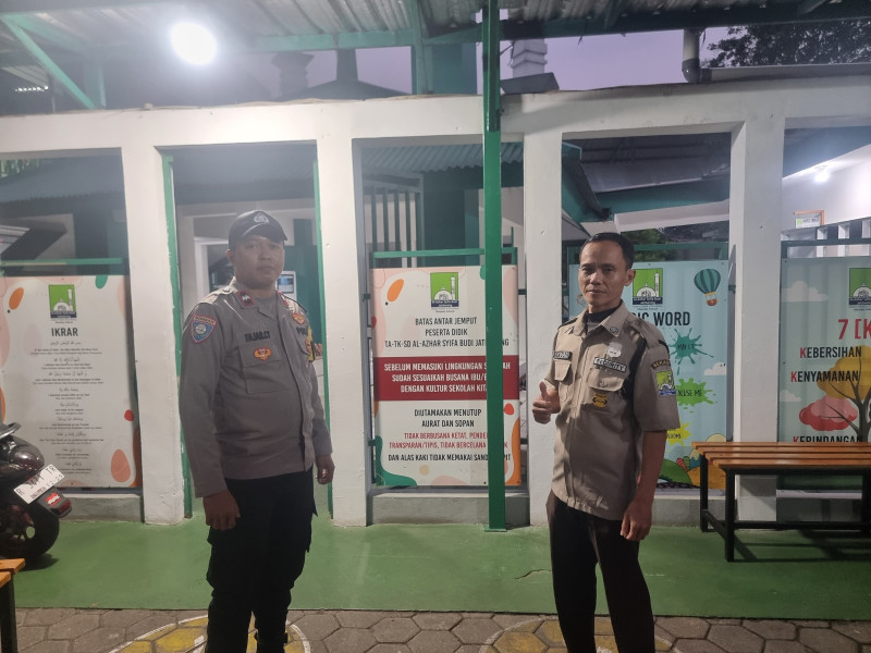 Bhabinkamtibmas Kelurahan Jatibening Baru, Aipda Fajar Cahyanto, melaksanakan kegiatan Sosialisasi dan Patroli Dialogis di TA/KB - TK - SD Al Azhar Syifa Budi Jatibening.