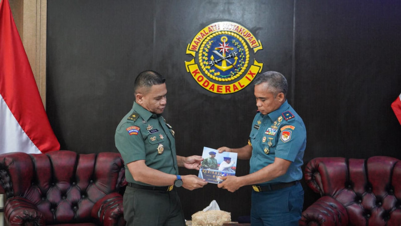 TNI AL, Ambon, Media Budaya Indonesia . Com - Wakil Komandan Kodaeral IX (Wadan Kodaeral IX) Laksamana Pertama TNI Dr. Muhammad Risahdi, M.Si., (Han)., M.Tr. Opsla., mewakili Komandan Komando Daerah Angkatan Laut (Dankodaeral) IX Laksamana Muda TNI Hanarko Djodi Pamungkas S.H., menerima kunjungan Kepala Pusat Sejarah Tentara Nasional Indonesia (Kapusjarah TNI) Brigjen TNI Stefie Jantje Nuhujan, S.I.P., dan rombongan dalam rangka pengumpulan data sejarah operasi yang bersifat OMP/OMSP serta sejarah satuan-satuan militer, bertempat di Lobby Mako Kodaeral IX, Rabu (10/12/2025).