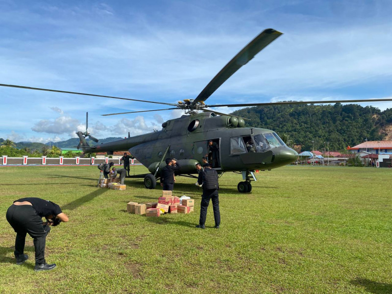 Pendistribusian bantuan logistik bagi masyarakat terdampak bencana di dua lokasi tersebut dilakukan menggunakan Hellikopter Bell 412EPI No. Reg. HA-5230, Bell 412EP HA-5176 masing-masing dengan kapasitas maksimal 600 kg dan Helikopter MI 17V5 No. Reg. HA-5140 dengan kapasitas maksimal 1.200 kg.