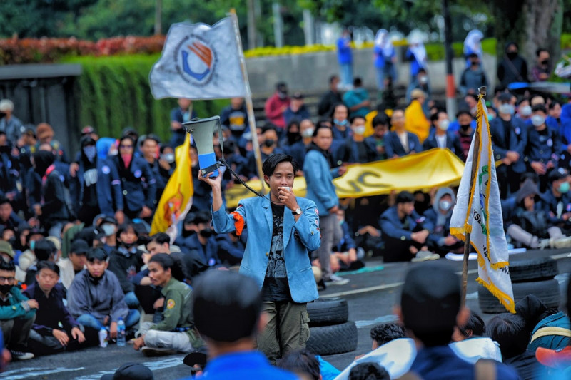 BANDUNG l Budaya Indonesia - Sejumlah aksi menyampaikan pendapat di muka umum atau unjuk rasa digelar mahasiswa dan pengunjuk rasa di wilayah Jawa Barat, Senin (11/4/2022)