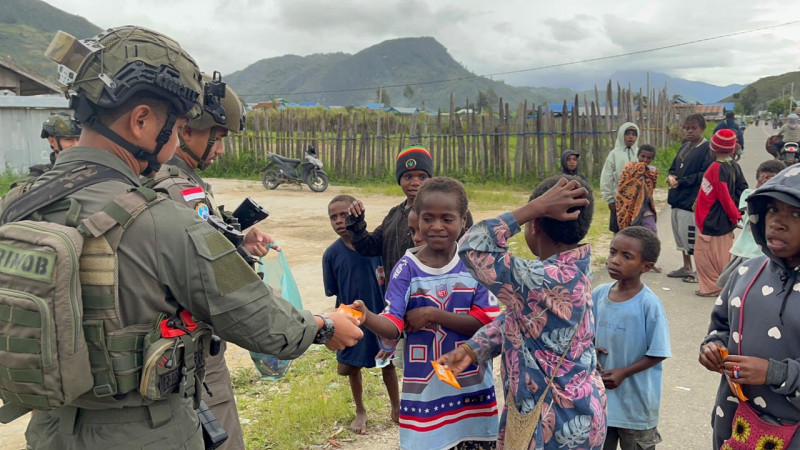 Personel Ops Damai Cartenz Berbagi Kebahagiaan Bersama Warga dan Anak-anak di Enarotali
