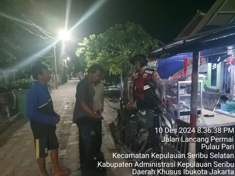 Jakarta, Media Budaya Indonesia.Com - Dalam upaya menjaga keamanan dan ketertiban masyarakat, Polsek Kepulauan Seribu Selatan menggelar Kegiatan Patroli Malam Perintis Presisi pada Rabu (11/12/2024). Patroli ini dilakukan secara dialogis dan sambang ke sejumlah titik rawan di wilayah hukum Polsek Kepulauan Seribu Selatan guna mencegah gangguan kamtibmas, khususnya tawuran remaja.