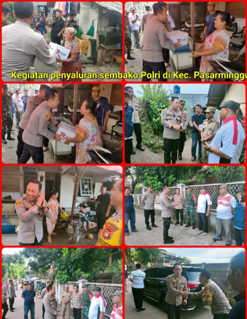 di dampingi oleh Kapolsek Pasar Minggu Kompol Rusit Malaka, SH, MH Bersama dengan tiga pilar membagikan langsung sembako bantuan Polri terhadap warga masyarakat yang membutuhkan. bantuan sembako Polri tersebut di harapkan dapat meringankan beban Warga masyarakat.