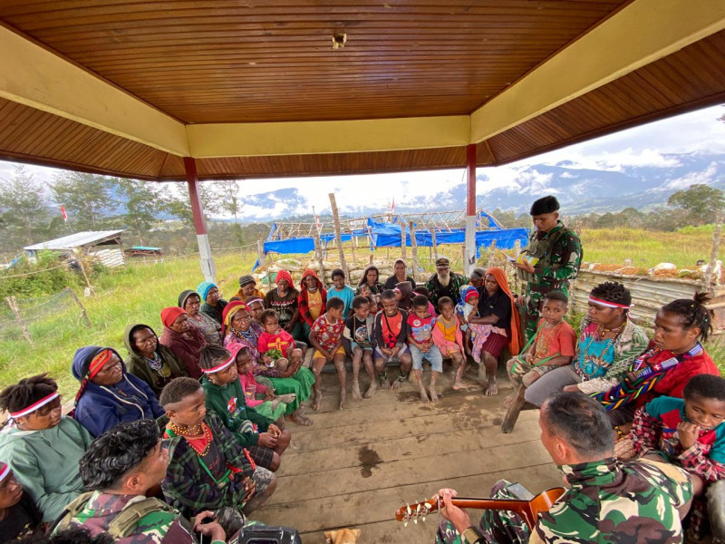 Eronggobak, Media Budaya Indonesia.Com - Pos Eromaga Satgas Mobile Yonif 323 Buaya Putih Pimpinan Lettu Inf Anggun melaksanakan ibadah Mingguan bersama masyarakat kampung Eronggobak bertempat di pos Eromaga, Distrik Omukia, Kabupaten Puncak, Papua Tengah, Minggu kemarin (11/08/24).