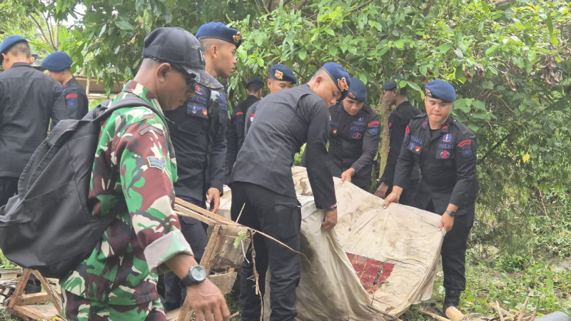 Pasca Banjir di Bali, Polisi Turun Bantu Warga Bersih-Bersih Lokasi Bencana