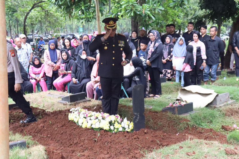 Pengajian sekaligus dilakukan sholat jenazah di Mushola Al& Fatah Komplek Polri Munjul Baru.Kapolres Metro Jakarta Utara Kombes Pol Gidion Arif Setyawan pimpin selaku Inspektur upacara penyerahan pemakaman secara kedinasan, adapun sambutan pemberangkatan oleh Irup.