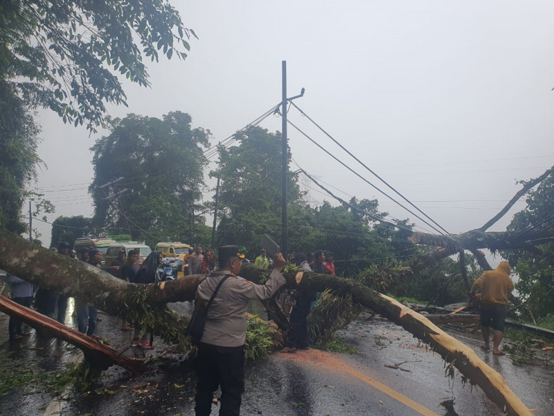 “Pukul 10.30 WIB kendaraan sudah bisa melintas karena evakuasi pohon tumbang dilakukan dengan cepat dan menggunakan bantuan unit mesin Sinswo,” ujar Kapolres.