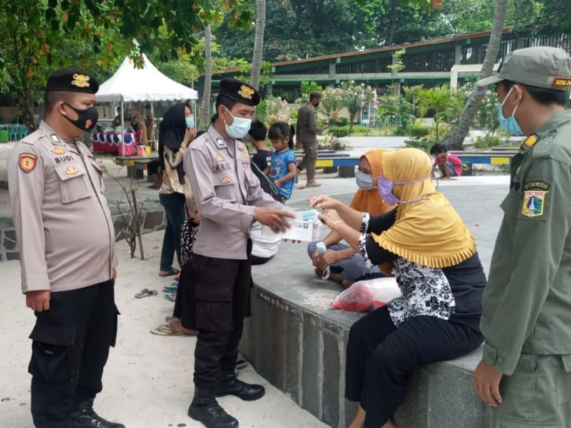Sementara Polsek Kepulauan Seribu Selatan membagikan di Pulau Tidung, Pulau Pari, Pulau Lancang dan Pulau Untung Jawa.