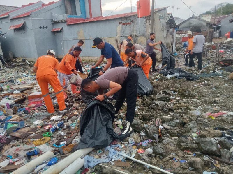 Polsek Kepulauan Seribu Utara Bersama Masyarakat dan Pemerintah Daerah Gelar Aksi Bersih Pantai Untuk Pelestarian Lingkungan