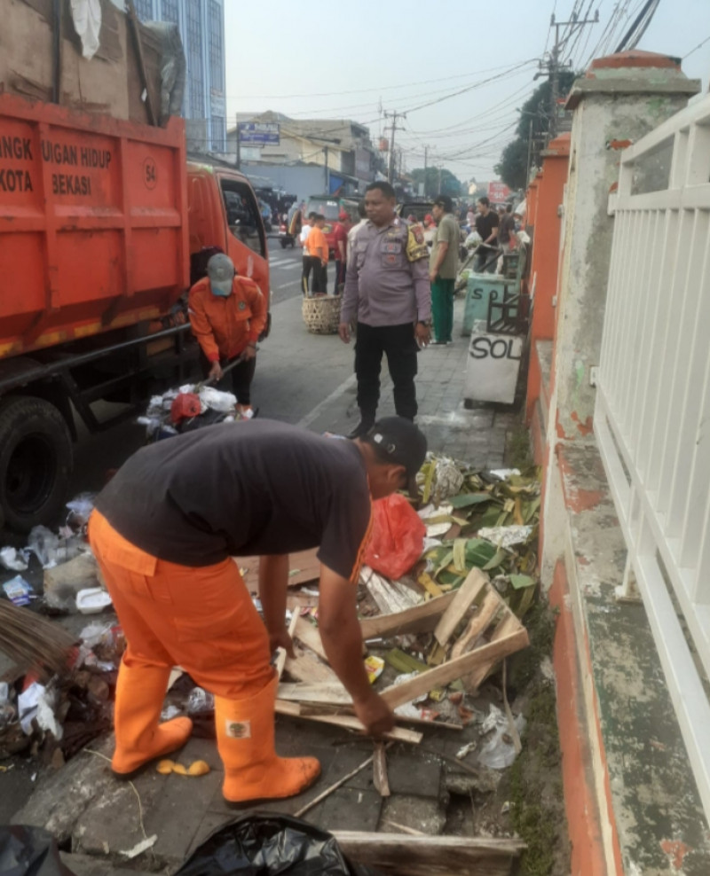 Kegiatan bersih-bersih di lingkungan secara bersama antara tiga pilar dengan masyarakat dilakukan untuk membersihkan sampah-sampah yang menumpuk di sekitaran wilayah Pondok Gede.