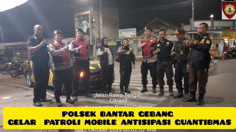 Bantar Gebang, Media Budaya Indonesia. Com - Dalam rangka menjaga situasi kamtibmas yang aman dan kondusif di wilayah hukumnya, Polsek Bantar Gebang menggelar kegiatan Patroli Mobile Antisipasi Guantibmas pada Minggu malam (12/10/2025).