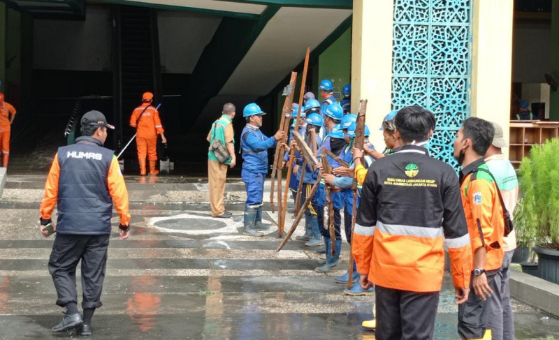 "Karena jika tidak dilakukan apa-apa atau dibiarkan begitu saja, takut dampak kerusakan dapat meluas. Contohnya ada bekas rontokan besi jatuh ke lantai bawah, jika itu dibersihkan kita dapat tambal. Supaya tetap rapi dan dapat menghilangkan kesan masjid kumuh tidak terawat, terlebih sekarang musim hujan. Untuk target pembersihannya sendiri diperkirakan memakan waktu dua hari, dengan mengerahkan sekitar 500 petugas gabungan dari Badan Pengelola Aset, Sudin SDA, Sudin Cipta Karya, Sudin Lingkungan Hidup, Sudin Bina Marga, Sudin Sosial, Satpol PP, dan juga teman-teman dari kecamatan - kelurahan, " ungkapnya.