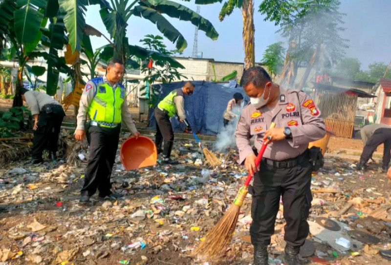 Kegiatan bersih-bersih lingkungan secara bersama antara Polri dengan masyarakat dilakukan untuk membersihkan sampah sampah yang menumpuk di sekitaran wilayah Bekasi Timur dan Rawa Lumbu.