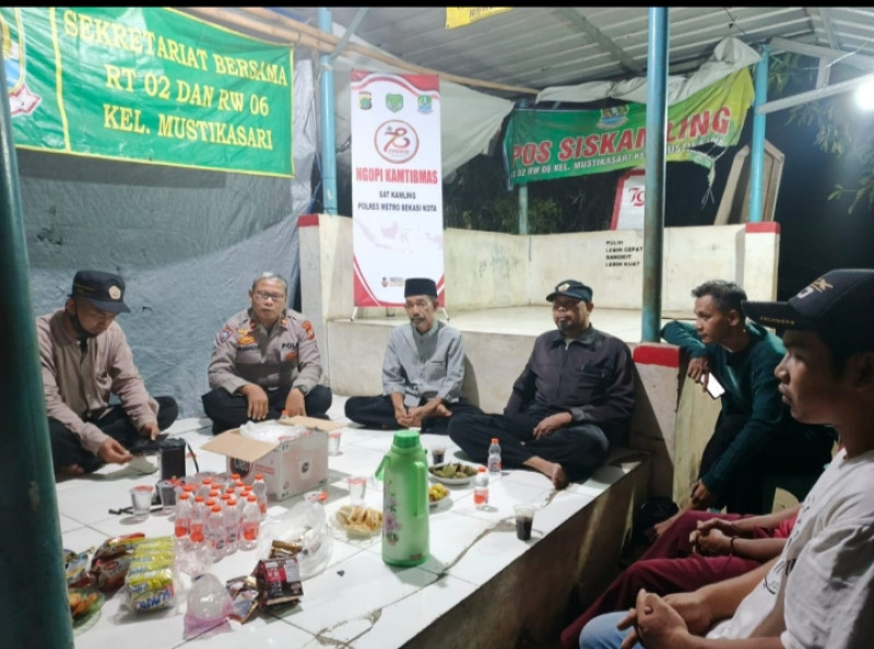 Bekasi Kota, Media Budaya Indonesia.Com - Dalam upaya membangun sinergitas antara Kepolisian dan masyarakat, Satuan Keamanan dan Ketertiban Masyarakat (Satkamling) Polres Metro Bekasi Kota menggelar kegiatan 'Ngopi Kamtibmas' di Poskamling Jl. Alhikmah RT 002/006, Kelurahan Mustikasari, Kecamatan Mustikajaya, Kota Bekasi. Jum'at (13/9/24).