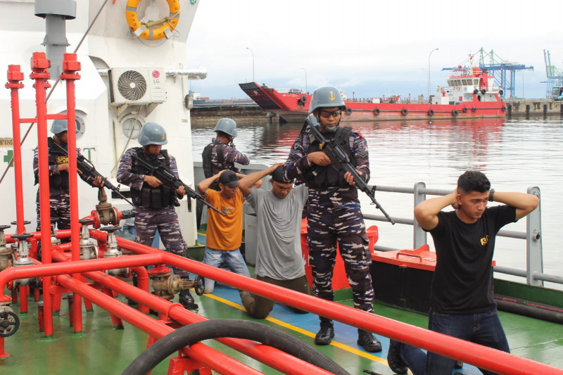 Dalam latihan kali ini diskenariokan bahwa KRI Teluk Manado-537 yang sedang berlayar mendapat laporan dari agen SPBO Wavin 01 bahwa armadanya telah dirompak oleh sekelompok orang tidak dikenal di Perairan Makassar. Menindaklanjuti laporan tersebut, Komandan KRI Teluk Manado-537 melaksanakan pencarian dan pendeteksian SPBO Wavin 01 dilokasi kejadian serta meluncurkan Tim VBSS untuk melaksanakan penindakan, menyelamatkan sandera dan melumpuhkan perompak. Berkat kesigapan dan gerak cepat Tim VBSS, sandera dapat diselamatkan dan perompak dapat dilumpuhkan.