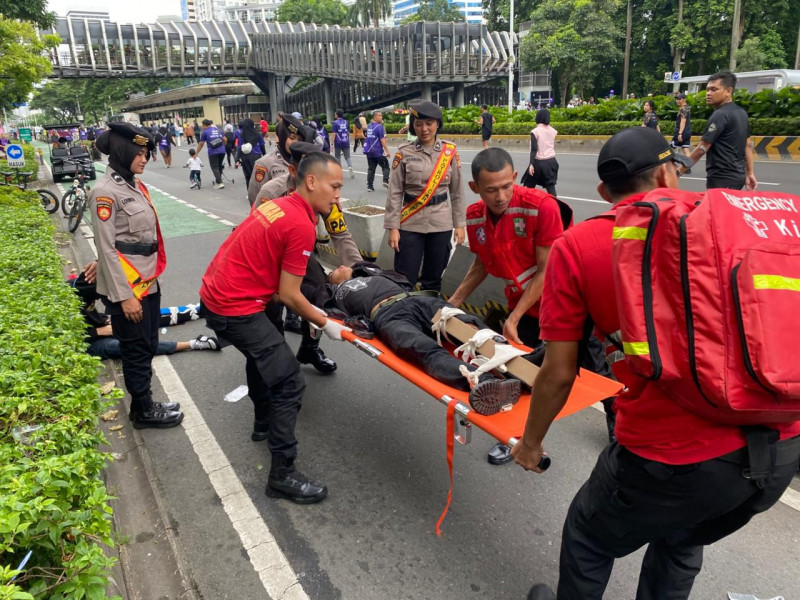 Di tengah pelaksanaan CFD, terjadi kecelakaan lalu lintas tunggal yang melibatkan satu kendaraan roda dua. Personel patroli bersepeda yang berada di lokasi langsung mengamankan TKP, memberikan pertolongan awal, dan membantu proses evakuasi korban ke RS Jakarta menggunakan ambulans Artha Graha.