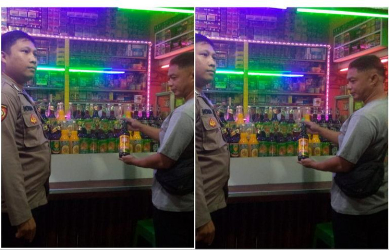 Bhabinkamtibmas Bersama Personil Polsek Ciawi Lainnya Lakukan Pencegahan Peredaran Miras di Wilayahnya