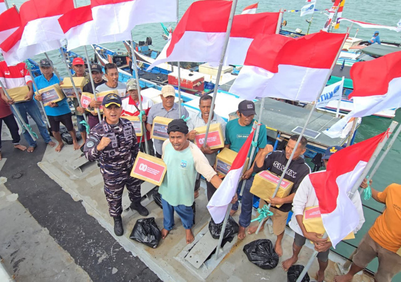 Merah Putih Berkibar di Ujung Negeri, KRI Ajak-653 Gelar Baksos dan Bagikan Bendera Jelang HUT Ke-80 RI