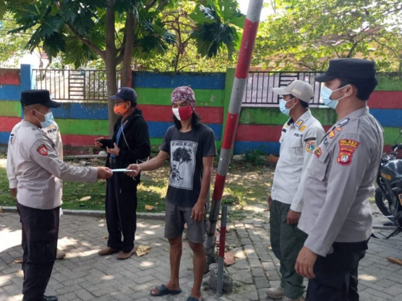 Masker dibagikan secara door to door kepada warga yang berada di ruang publik agar tidak terjadi kerumunan.