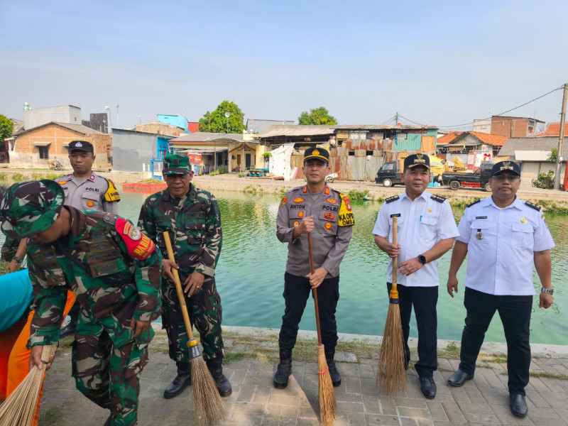 Kapolsek Bekasi Barat Mengikuti Giat Karya Bhakti TNI di Situ Rawa Bebek Bekasi