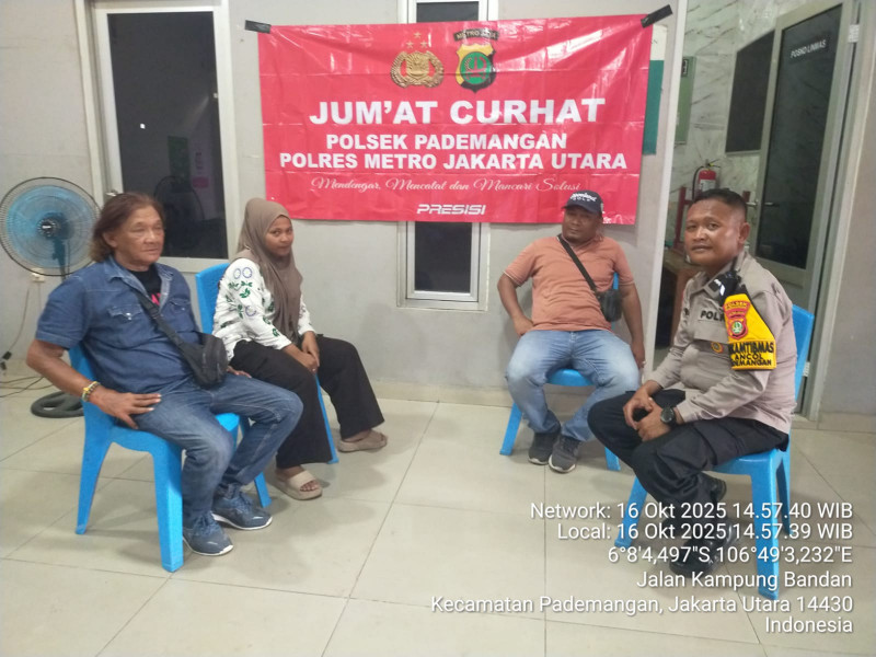 Jakarta Utara, Media Budaya Indonesia. Com - Dalam upaya mempererat hubungan antara kepolisian dan masyarakat, Polsek Pademangan melaksanakan kegiatan Jumat Curhat di Sekretariat RW 04 Kelurahan Ancol, Kecamatan Pademangan, Jakarta Utara, Kamis (16/10/2025) sore.