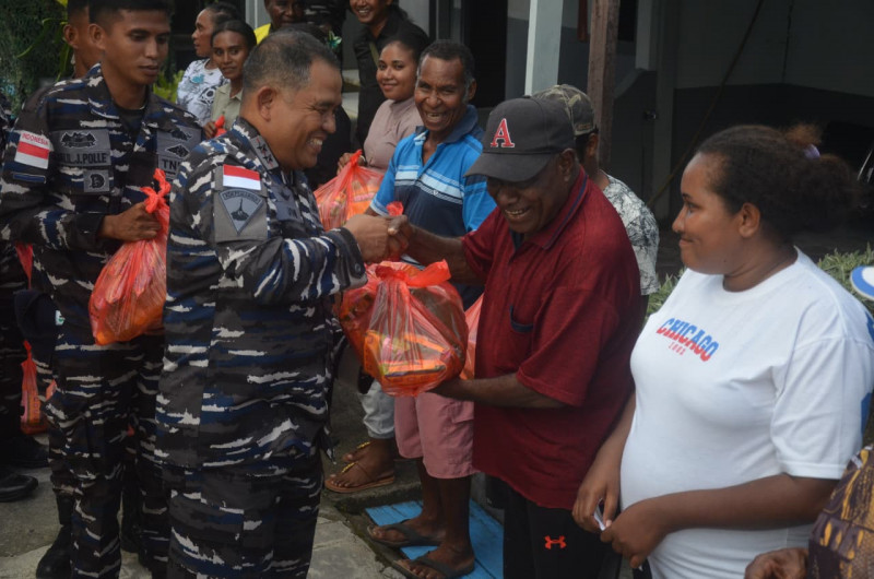 Tidak berhenti pada pembinaan satuan, Dankodaeral X juga menebarkan kasih dan kepedulian bagi masyarakat sekitar. Sebanyak 75 paket sembako diserahkan langsung kepada masyarakat Orang Asli Papua (OAP) di Kampung Samabusa wujud nyata kepedulian TNI AL untuk meringankan beban ekonomi dan mempererat jalinan kebersamaan antara prajurit dan rakyat.