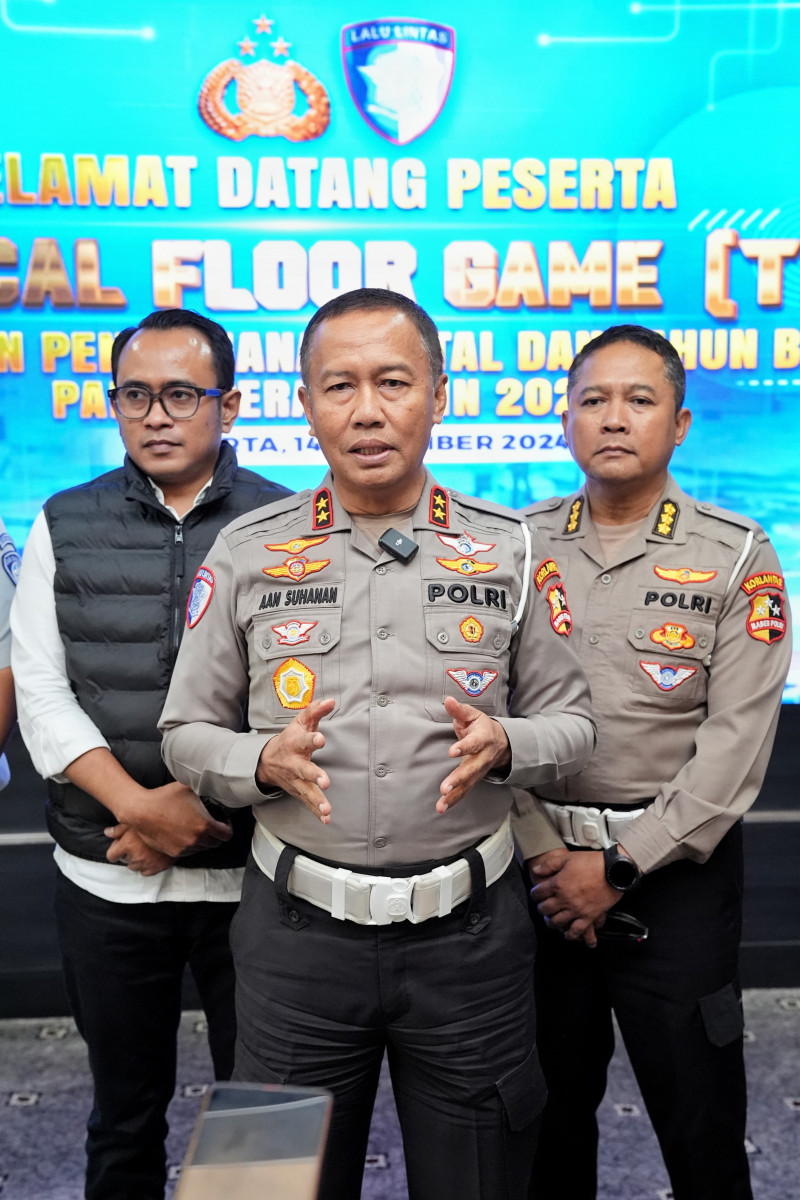 Kakorlantas Polri, Irjen Pol Aan Suhanan mengungkapkan bahwa pelaksanaan Tactical Floor Game (TFG) bertujuan untuk memantapkan konsolidasi dalam menghadapi libur Natal dan Tahun Baru (Nataru). Langkah ini diambil untuk memastikan kelancaran, keamanan, dan kenyamanan masyarakat selama masa libur akhir tahun.