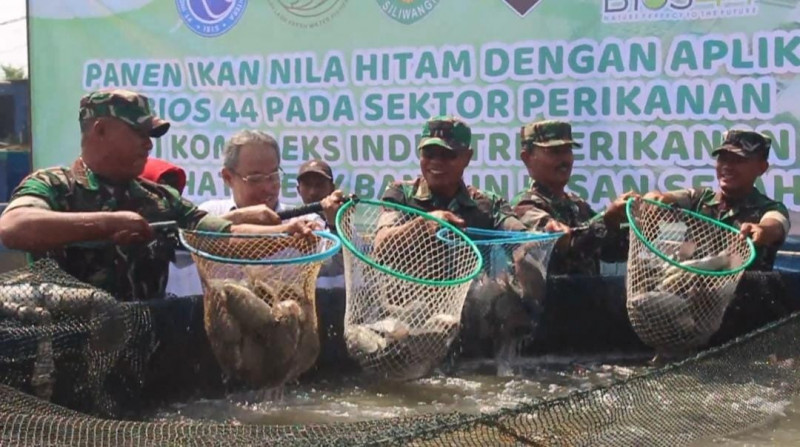 Cianjur I Media Budaya Indonesia.Com - Bertempat di Komplek Industri Perikanan PT. Indohatchery Bangun Insan Sejahtera (PT. IBIS) alamat Jl. Marwati Kp. Tarikolot Ds. Cinangsi Kec. Cikalongkulon Kab. Cianjur, Letkol Inf Afri Swandi Ritonga S.I.P beserta jajaran Yonif Raider 300/Bjw menghadiri Panen Raya Ikan Nila Hitam dengan Aplikasi Bios 44 pimpinan H. Endang Nurikhwan (Pemilik PT. IBIS).